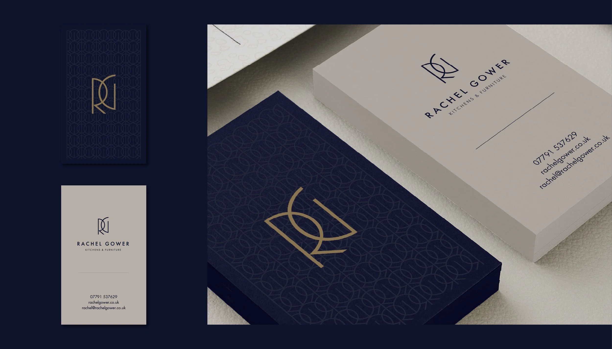 Rachel Gower Kitchen & Furniture DesignerLONDON Brand identity/ Business cards/ Colour palette/ Brand pattern.